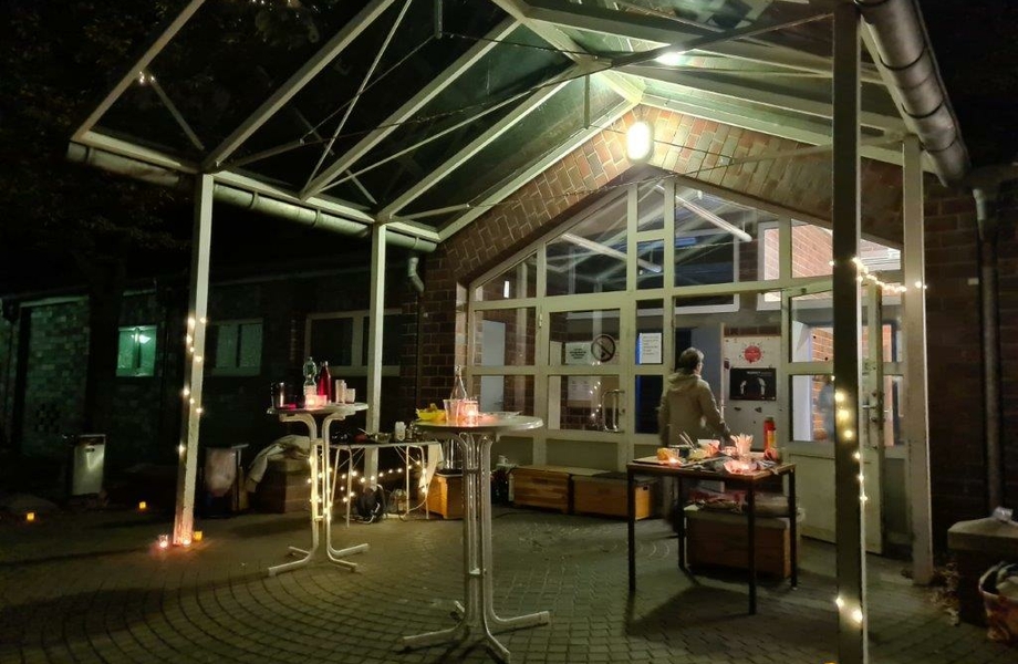 Vor der Turnhalle gab es einen kleinen Weihnachtsmarkt mit Waffelstand, Glühwein und Grillwurst fehlte natürlich auch nicht. In der Halle gab es den Stand mit den Tauschartikeln - natürlich weihnachtlich... auch musikalisch.