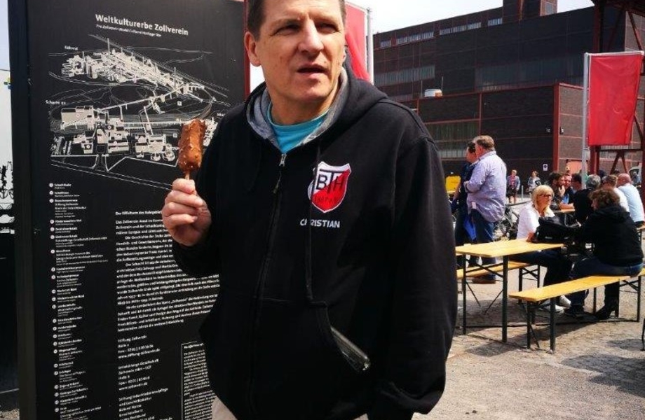 Zu dieser Zeit waren die acht Radler noch auf ihrer Tour über Jahrhunderthalle, Erzbahntrasse und Kray-Wanner-Bahntrasse auf dem Weg zur Zeche Zollverein. Nach einem eisgekühltem Stopp ging es über Schonebeck, Kray und Leithe ebenfalls in den Höntroper Südpark. Nach fast 36 Kilometern hatten sich die Radler zwischen 11 und 52 Jahren die Stärkung am Ende der Tour ebenfalls verdient.