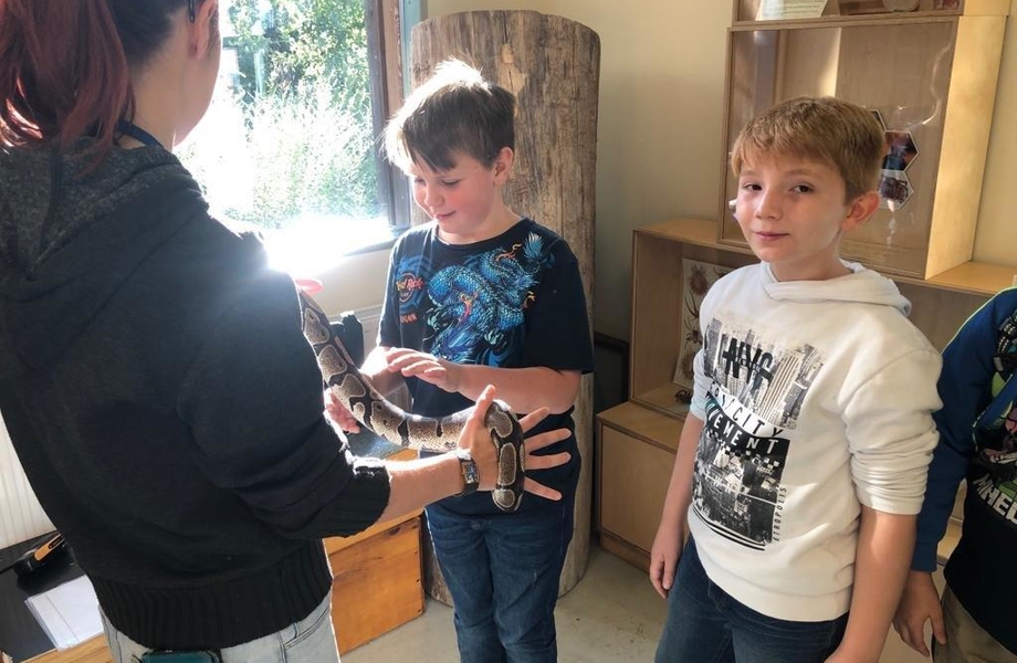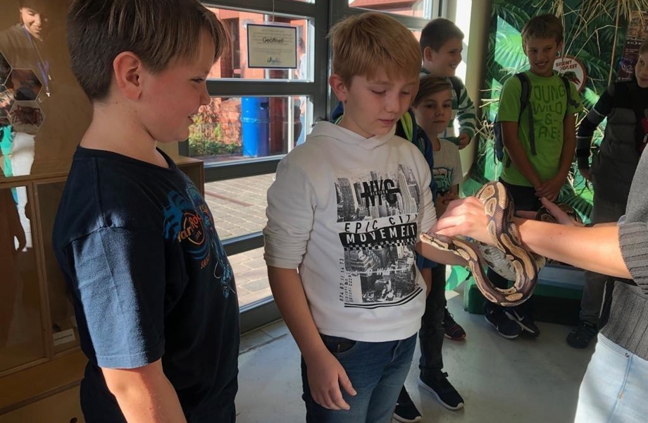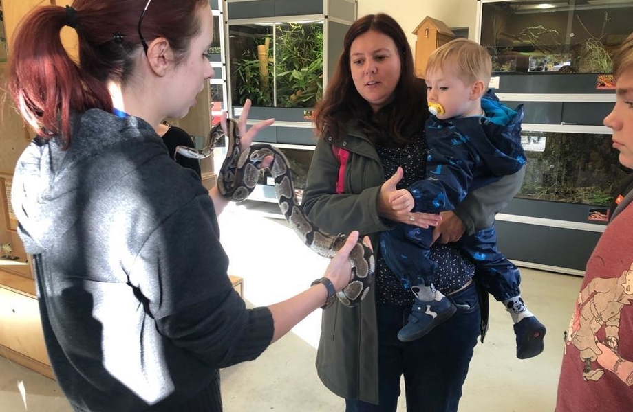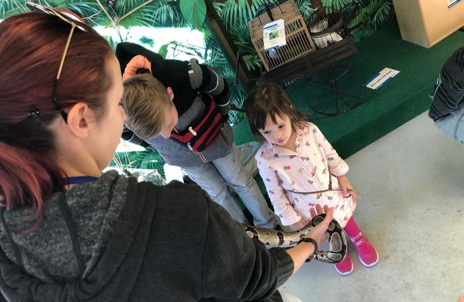 Als die Führung dann begann, gab es direkt das erste Highlight. Alle Kindern - selbst die Kleinsten - trauten sich unterschiedliche Tiere auf die Hand zu nehmen oder zu streicheln. Darunter eine Schlange und eine Stabheuschrecke. Ein weiteres Highlight war dann der Besuch der Pinguine und Seehunde. Auf dem Rückweg ging es dann noch in den Streichelzoo und es wirkte fast so, als hätten die Kinder vor Ziegen mehr Angst, als vor Schlangen.