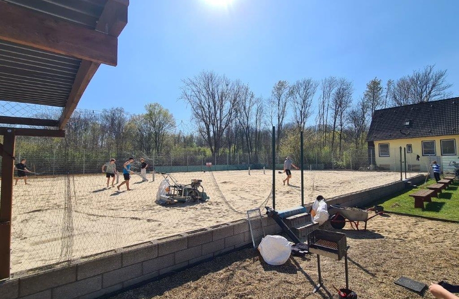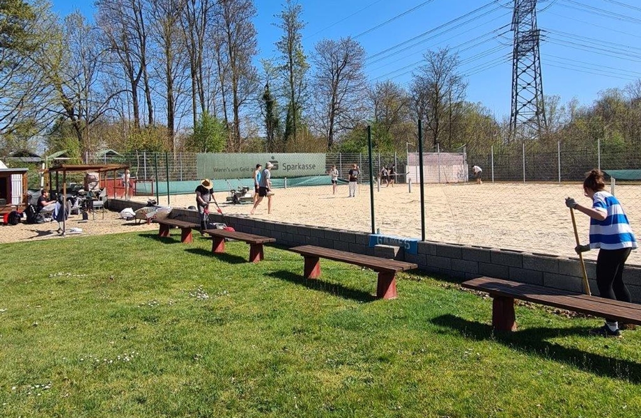 Mit einer 16 Mann/Frau-starken Arbeitsgruppe ging es am Samstag daran den Sand vorzubereiten und die Nebenanlagen für die Beachsaison 2025 vorzubereiten. Es waren so viele helfende Hände da, dass zwischenzeitlich sogar die Arbeitsgeräte knapp wurden.