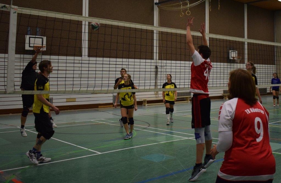Im ersten Satz konnte sich der Turnbund am Ende nach der Abwehr von zahlreichen Satzbällen schließlich knapp mit 28:26 durchsetzen.Da sich schon hier abzeichnete, dass der angeschlagene Christian keine drei Sätze würde durchspielen können, wurde im zweiten Durchgang auf zwei weibliche Zuspieler umgestellt. Da es sich jedoch allenfalls um Teilzeit-Zuspielerinnen bzw. Spielerinnen mit Erfahrungen auf der Diagonalposition handelte, konnte die nun vorhandene Stärke im Angriff dennoch nicht ausreichend genutzt werden. Die Folge war ein recht deutlicher Rückstand zu Satzbeginn (7:13), der im weiteren Verlauf zwar verkürzt, aber nicht aufgeholt werden konnte. So ging der Satz schließlich mit 22:25 verloren und es musste der Tie-Break über den Erfolg entscheiden.