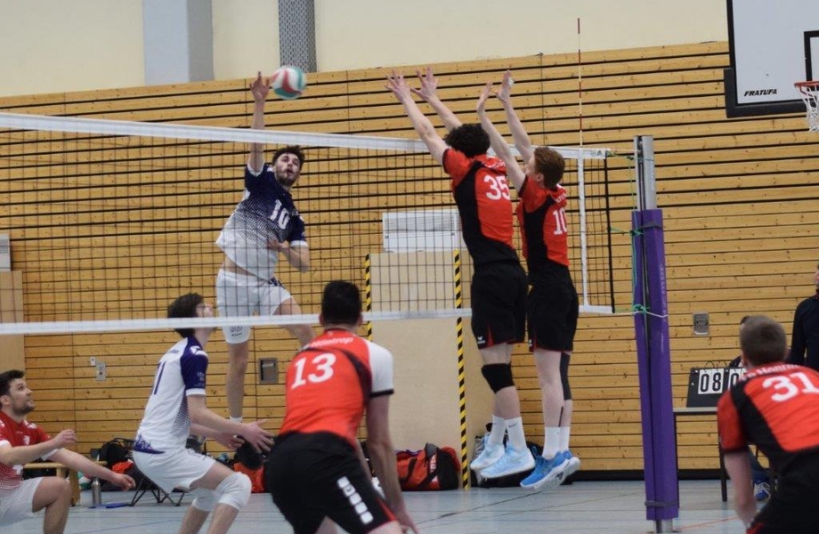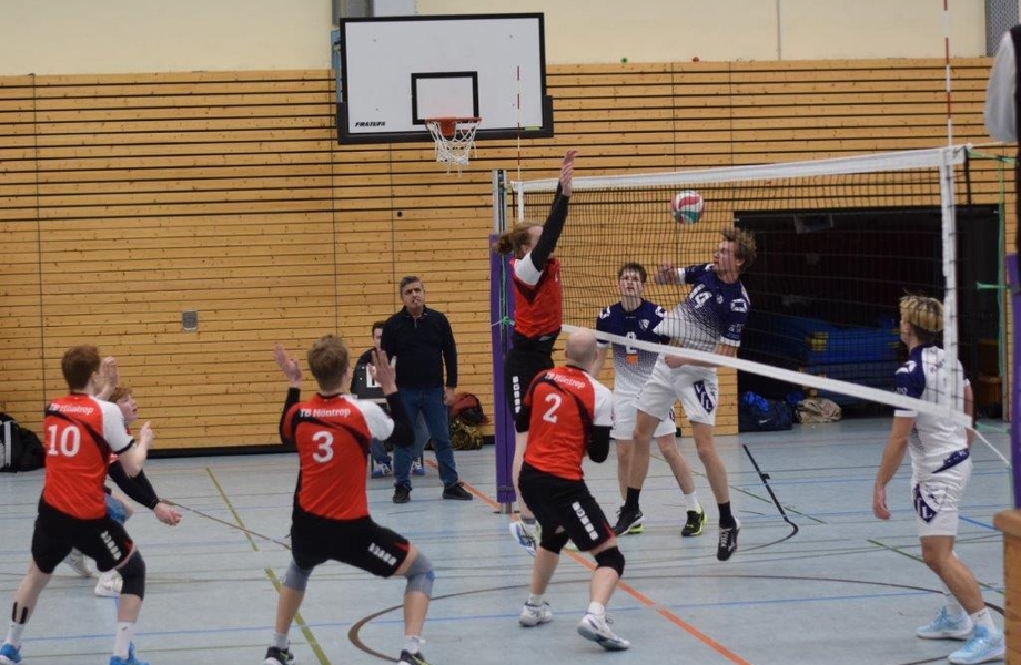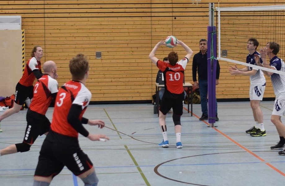 Die Höntroper nutzen das Derby aber auch, um ihren Nachwuchsspielern Einsatzzeiten auf höherem Niveau zu geben. Neben Artem, der bereits seit der vergangenen Saison zum Kernkader des Mannschaft gehört, sowie Florian und Paul, die immer mal wieder zu Einsätzen in der Verbandsliga kamen, kam Joscha zu seiner Premiere im Team. Da Libero Jan krankheitsbedingt ausfiel, sollte der Annahme-/Außen-Spieler der dritten Herren aus der Bezirksklasse sein Debüt geben. Zwar ging die Generalprobe im Training tags zuvor ziemlich daneben, aber dafür performte er im Spiel in Annahme und vor allem der Abwehr mit vielen starken Aktionen. Hier zeigte sich, dass die Nachwuchsspieler oftmals lediglich ins Wasser geworfen werden müssen, damit sie sich frei schwimmen. Im letzten Satz übernahm dann Thies diese Aufgabe, der zu aus der zweiten Mannschaft kommt und sich ebenfalls für weitere Einsätze empfahl. Zu einem kurzen ersten Einsatz kam auch Mika, der seinem Bruder im Zuspiel ablöste und noch mit zwei Aufschlägen punkten konnte.