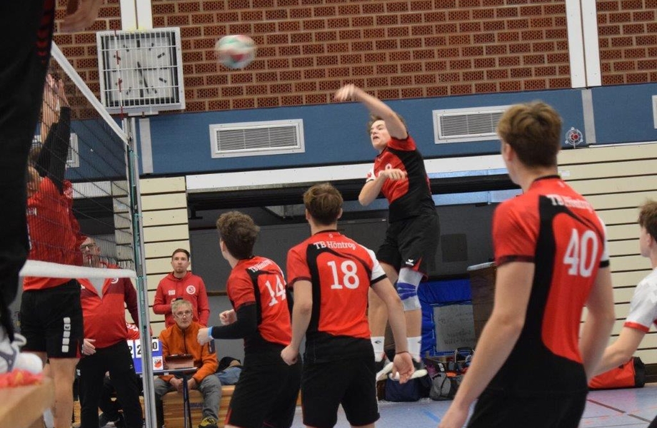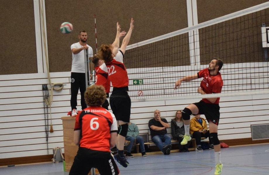 Der zuletzt so schwierige Spielaufbau war zusammen mit den beiden Annahmespielern Bjarne und Artem, der dank Doppelspielrecht weiter beim Turnbund aktiv sein kann, plötzlich kein Problem mehr. Allerdings zeigte sich zwischendurch dann doch noch mal die noch nicht komplett abgelegte Unsicherheit, denn eine 11:6-Führung wurde bis zur Crunchtime wieder verspielt (20:21). Da war es gut, dass die auf ihr eigenes Spiel wartenen Spieler der 3. Mannschaft noch in der Halle waren und als Alternative zur Verfügung standen. Ein Doppelwechsel im Zuspiel und auf der Diagonalen und die Höntroper konnten die Crunchtime für sich entscheiden.