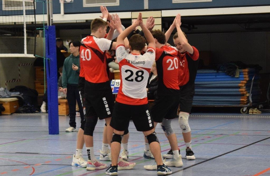So blieb die Spannung weiter hoch und die Höntroper Jungs konnten trotz erneuter Führungen von bis zu fünf Punkten das Spiel nicht vorzeitig zu ihren Gunstern entscheiden. Am Ende vergab das Team beim 24:22 erneut zwei Satzbälle und musste in der Folge sogar einen der Bochumer abwehren (24:25). Am Ende konnte mit drei weiteren Punkten der Sack jedoch zugemacht werden.