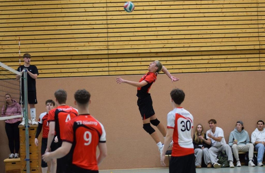 Die blau-weißen Gastgeber hatten das Spiel von Anfang an gut im Griff, der Block stand viel zu häufig zu gut und wenn dann doch einmal die Lücke erwischt wurde, stand die meist sichere Feldabwehr parat. So versuchten es die Höntroper Spieler mit gelegten Bällen, die jedoch falsch platziert wurden, oder noch mehr Druck beim Armzug, was dann wiederum zu mehr Eigenfehlern führte. Da zudem eine zu große Anzahl von Aufschlägen zu lang waren, gab es kaum einmal Serive-Winner, so dass die 0:3-Niederlage am Ende für alle Außenstehenden unvermeidbar erschien.