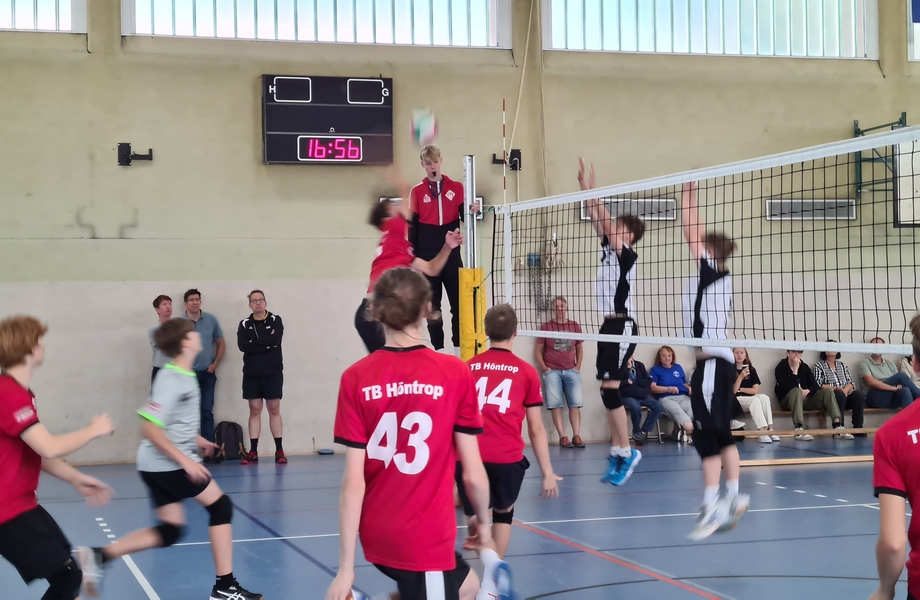 Der EVC Massen war dem Team bereits in der Vorsaison begegnet und konnte hier durch viel Kampfgeist überzeugen, was in knappen Spielergebnissen mit dem glücklichen Ende für den TB Höntrop endete. Der erste Satz startete mit zu wenig Konzentration und Druck im Aufschlag, wodurch sich beide Mannschaften bis zur Mitte des Satzes ein Kopf an Kopf Rennen lieferten. Erst hier konnten sich die Höntroper Jungs durch bessere Aufschläge und aufmerksamere Sicherungsarbeit einen Vorsprung erarbeiten. Der erste Satz ging somit verdient mit 25:20 an den TBH.