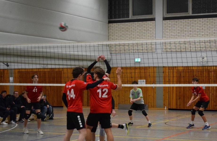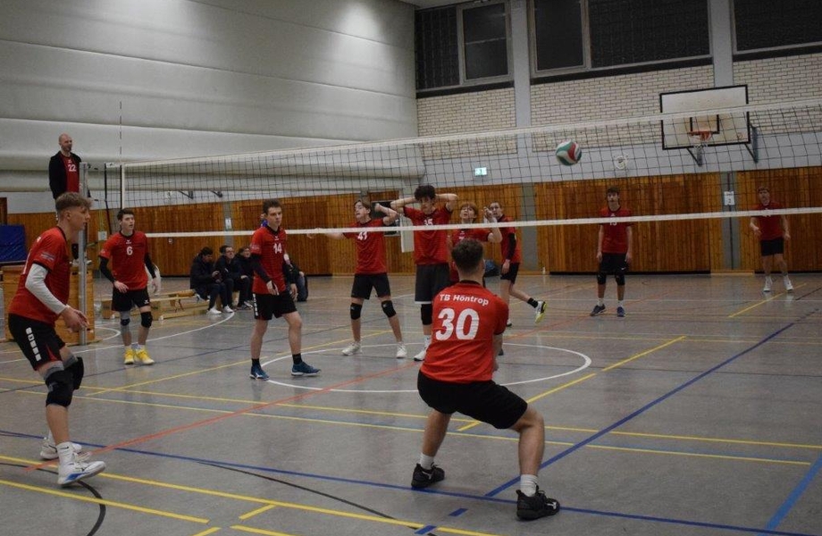 Im letzten Spiel des Tages gab es erneut ein Vereinsduell, dieses Mal gegen die 2. Herren des TBH, während die 1. Herren sich auf das Finale vorbereiteten. Nach einem etwas schläfrigen Start konnte sich das Team schnell fangen und zeigte nun durchweg eine gute Leistung in allen Spielelementen. Nach einer Aufschlagsserie von Joscha (7:30 auf 13:10) lagen die Jungs nun vorne und der Satzgewinn war nicht mehr so unwahrscheinlich. Schlussendlich konnte das Team dem danach steigenden Druck des gegnerischen Angriffs nicht mehr standhalten, womit der Satz knapp 23:25 verloren ging. Im zweiten Satz steigerte sich der Gegner dann deutlich im Aufschlag, was die Höntroper Nachwuchsspieler in Bedrängnis brachte und den eigenen Angriff deutlich erschwerte (17:25).