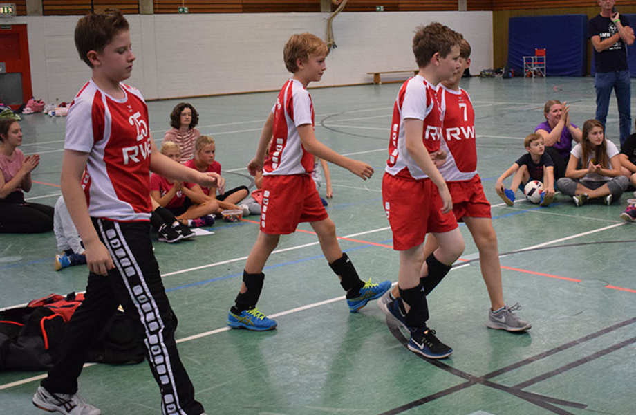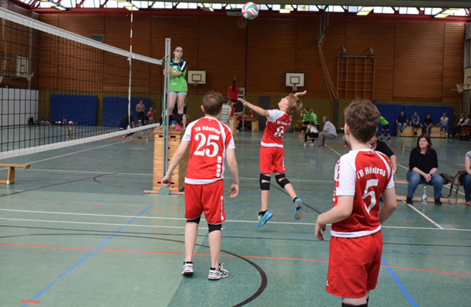 Da die Überlegenheit insgesamt doch recht groß gegenüber den anderen Mannschaften war, bekamen die Jungs im Laufe des Turniers einige Zusatzaufgaben. So sollte am Netz ausschließlich im Sprung agiert werden und die Aufschläge (ausnahmslos von oben) wurden nicht von der U14-Linie, sondern vom Großfeld gemacht. Dementsprechend gab es mehr Fehler als eigentlich normal, aber nur so können sich die Spieler an die kommenden Aufgaben z.B. in der Kreisklasse herantasten.