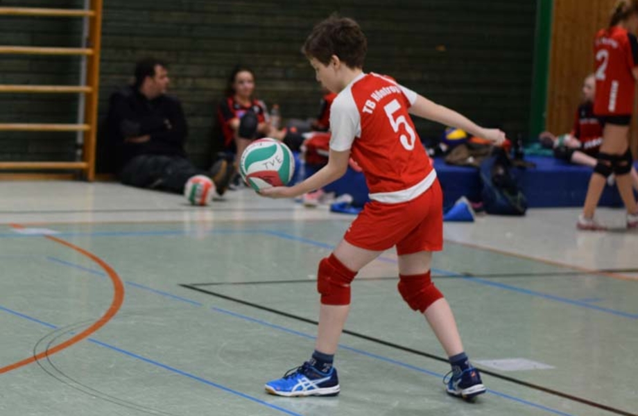 Es folgte die Spielrunde, in der die Jungs das Schiedsgericht stellen mussten. Anschließend ging es gegen die Erstvertretung der Essener Mädchen. Und diese hatten zuvor gegen die Mädchen aus Vogelsang eine überrschend gute Leistung gezeigt und im zweiten Satz nur knapp verloren. Nachdem auch hier der erste Durchgang klar mit 25:13 den den TBH ging, fehlte in der Folge ein wenig die Konzentration und die Absprache im Höntroper Trio. Obwohl zwischenzeitlich eine Führung auf der Anzeigentafel stand ging der Satz am Ende aufgrund zu vieler Eigenfehler mit 22:25 verloren und das Team musste in die Verlängerung. Hier aber setzten sich die Spieler wieder deutlich mit 15:8 durch.