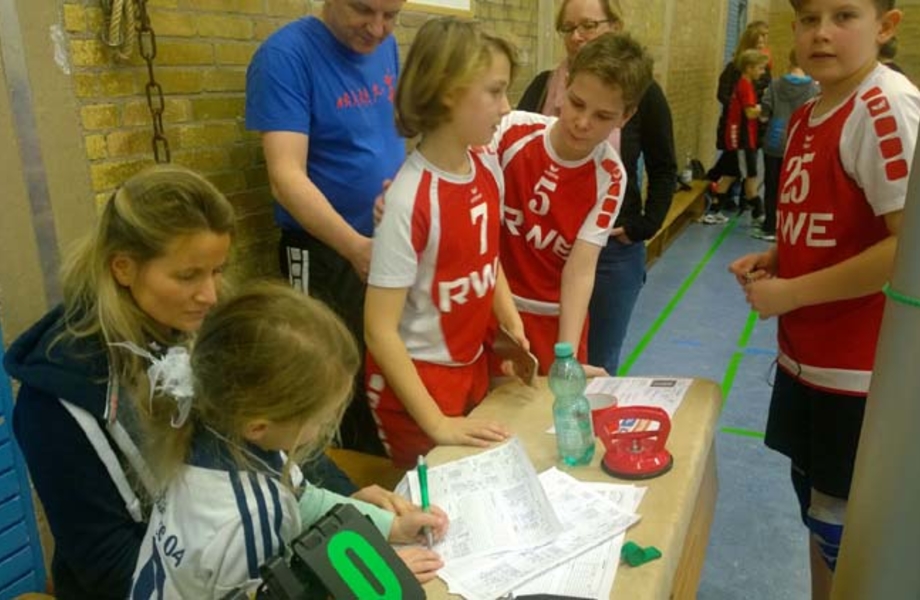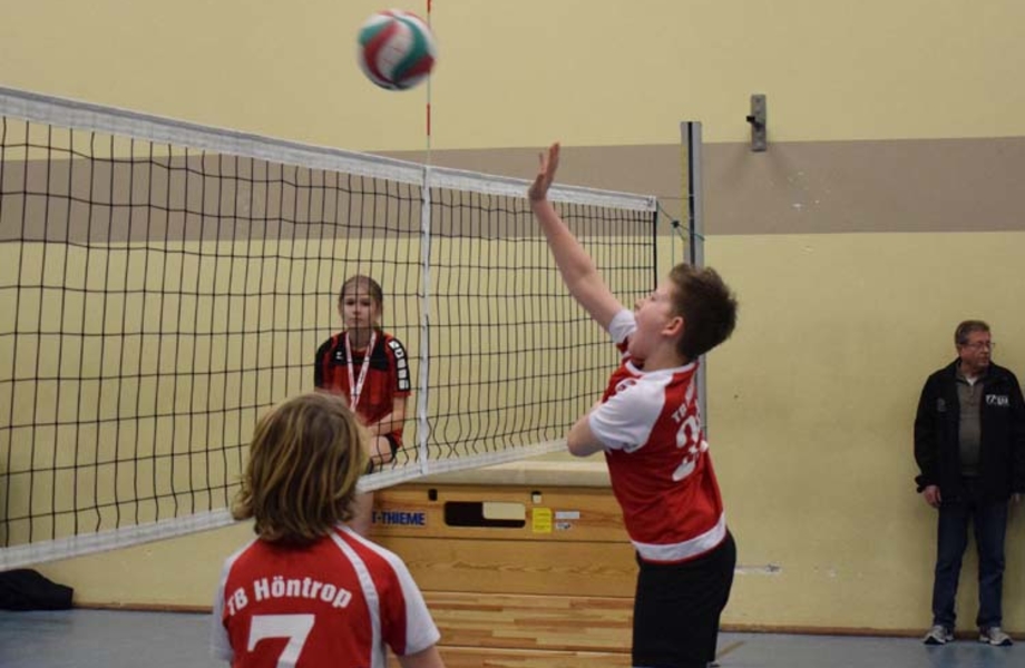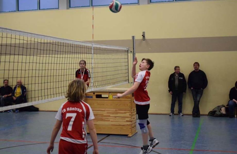 Im letzten Spiel des Tages ging gegen die Mädchen von TV Vogelsang, die das HInspiel kanpp gewinnen konnten und so in der Tabelle direkt vor dem Turnbund lag. Allerdings merkte man nun im dritten Spiel, dass das Höntroper Trio ohne Auswechselspieler unterwegs ist. So ging der erste Durchgang recht deutlich mit 17:25 verloren. Besser machen es Tom, Mika und Bjarne dann im zweiten Satz, als die Eintracht in die Verlängerung gezwungen wurde. Am Ende unterlagen die Jungs nach wieder besserem Spiel aber knapp mit 24:26.