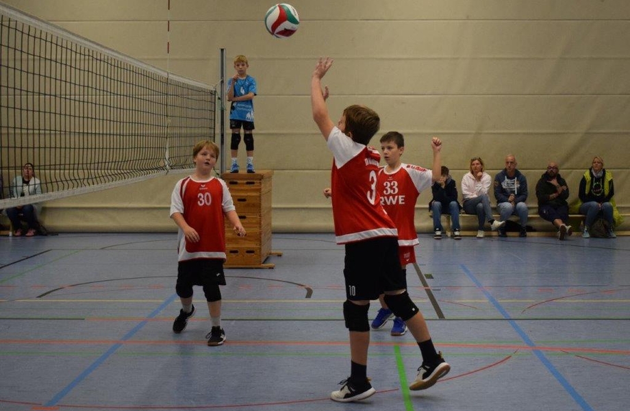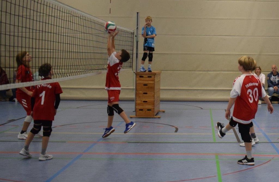 Trotzdem ging das Team gegen den Favoriten TV Hörde mit Mut zur Sache, musste sich jedoch im ersten Durchgang beim 14:25 klar geschlagen geben. Allerdings zeigte insbesondere Lukas ab seiner Einwechselung, dass er das Spiel insgesamt stabilisieren und beruhigen konnte. Im zweiten Satz blieb dann zunächst der noch angeschlagene Kapitän Julian auf der Bank. Nach seiner Einwechselung konnte die Mannschaft den Rückstand verkürzen und am Ende stand mit dem 23:25 ein respektables Ergebnis.