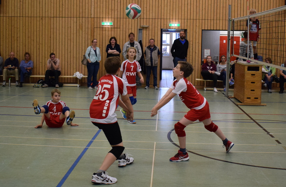 Anschließend ging es dann für Mika, Tom, Bjaerne und Jakob darum zu zeigen, dass sie auch auf dem größeren Feld der U14 zurecht kommen. Und dies klappte insgesamt recht gut, auch wenn am Anfang viele Aufschläge vergeben wurden. So ging der erste Satz mit 25:21 noch recht knapp aus. Im anschließenden Durchgang steigerten sich alle ein wenig und hielten die Gäste aus Hattingen mit 25:18 erneut auf Distanz. Damit waren die ersten Punkte im Sack und die Pflicht erfüllt.
