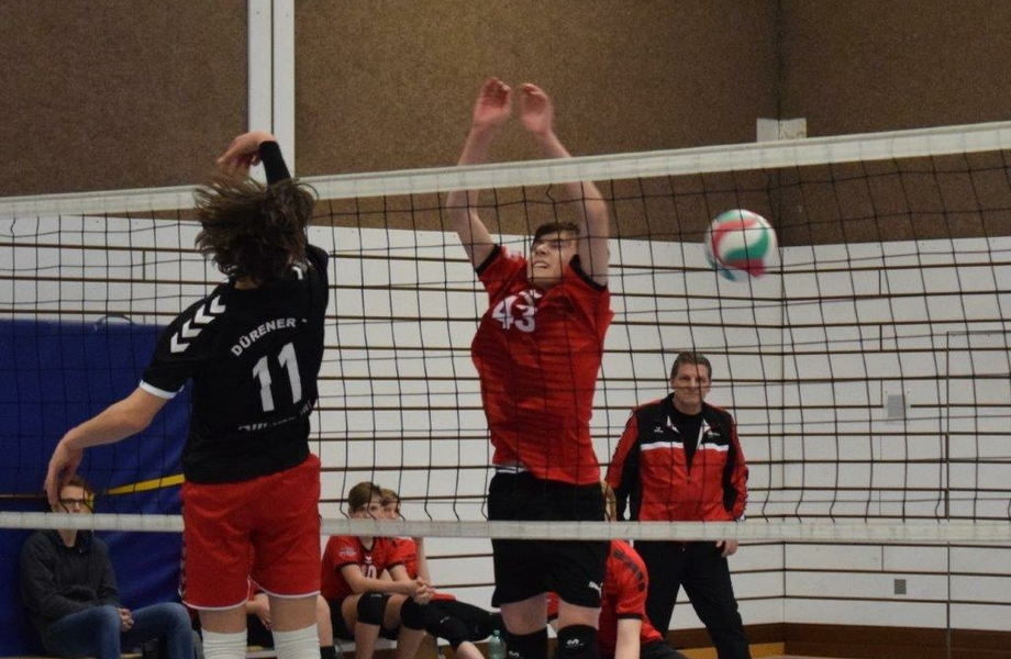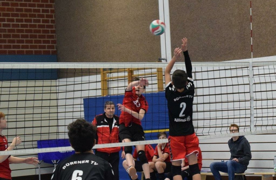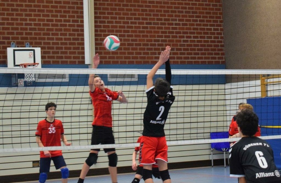 Im zweiten Spiel ging es für die Höntroper Jungs gegen den Dürener TV. Hier überraschte das Team durch ein deutlich bessere Leistung, als im vorangegangenen Spiel. Kaum noch Ängstlichkeit und eine deutlich bessere Laufarbeit im Zuspiel ermöglichten nun deutlich mehr Möglichkeiten. Es konnte in fast jedem Spielzug ein Angriff generiert werden, welche oft mit einem Punkt belohnt wurden. Auch im Block konnte hier der ein oder andere Punkt erspielt werden. Noch dazu konnte der Aufschlag an einigen Stellen Druck ausüben, was in einer Führung gleich zu Satzbeginn resultierte. Die nun deutlich bessere Leistung auf Seite der Spieler wurde mit dem ungefährdeten Satzerfolg (25:18) belohnt.