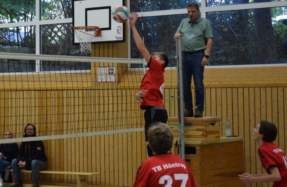 Gegen die etwas jüngeren Essener startete das Team zunächst ausgeglichen und musste sich direkt in den ersten paar Punkten der Spielrafinesse des Gegners geschlagen geben. Viele gut platzierte Bälle bereiteten den Höntropern einige Schwierigkeiten, da durch fehlende Bereitschaft viele eigentlich einfache Bälle und somit Punkte liegen gelassen wurden. Doch auch der TBH muss sich nicht verstecken und so konnte Florian mit einer sehr druckvollen Aufschlagsserie von 3:2 auf 8:2 erhöhen. Mit diesem Punktepolster im Rücken spielte das Team nun deutlich befreiter auf und konnte sich zunehmend besser auf die platzierten Bälle des Gegners einstellen. Da es am Netz praktisch keinen Block gab, konnten die eigenen Angriffe mühelos in der gegnerischen Feldhälfte platziert werden und der erste Satz ging deutlich mit 25:11 an den TB Höntrop.