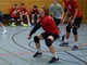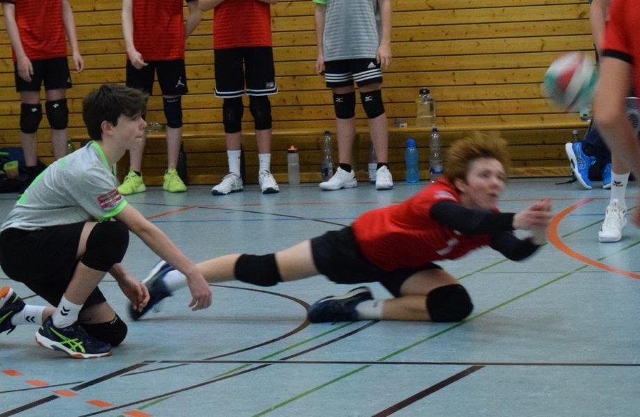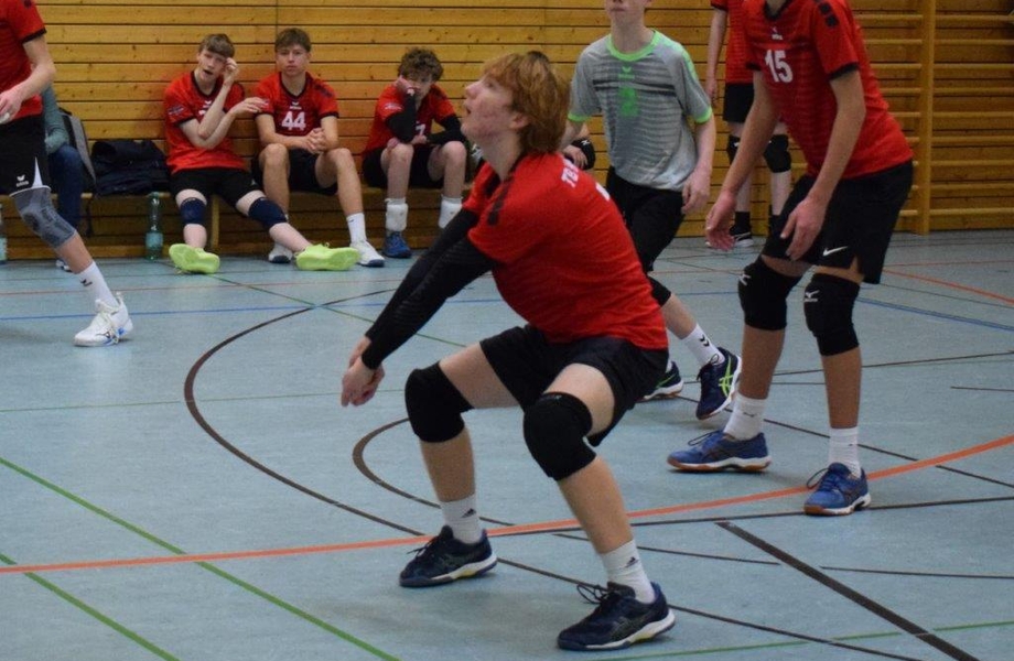 Im Auftaktspiel gegen die TuSA aus Düsseldorf startete das Team nach drei guten Aufschlägen von Florian direkt durch und lag so 4:0 vorne. Zwei weitere Serien von Aaron und Paul komplettierten den guten Start (13:3). Hier schien der erste Satz fast schon entschieden, aber der Gegner kämpfte sich noch einmal heran. In dieser mittleren Phase des Satzes gelang es dem Annahmeriegel zu selten den Druck aus dem gegnerischen Aufschlag zu nehmen und passgenau zum Zuspieler zu bringen. Aufgrund der für Aaron neuen Aufgabe ergab sich ohnehin etwas Unruhe im eigenen Aufbauspiel, durch die ungenaue Annahme wurde diese Aufgabe zusätzlich erschwert. Mithilfe einer Auszeit und Veränderungen der Annahme konnte der eigene Angriff bei 13:10 dann endlich zu einem Punkt umgewandelt werden und Florian brachte den ersten Satz mit erneut druckvollen Aufschlägen nach Hause (25:18).