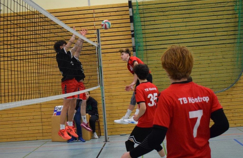 Doch so leicht wollte sich das Team nicht unterkriegen lassen. Ein Wechsel im Mittelblock und klare Ansagen für die Abwehrverteilung nordeten die Spieler wieder ein. Langsam aber sicher entwickelte sich ein deutlich besseres Spiel als im ersten Satz immer mit ein bis zwei Punkten Vorsprung. Als Kapitän Paul bei 15:13 dann an die Grundlinie trat lieferte er dort endlich ab. Insgesamt zehn Aufschläge brachten den TB Höntrop gleich zum ersten Satzball (24:13). Hier schlich sich dann der erste Fehler ein, aber nur einen Punkt später wurde der entscheidende Punkt gemacht (25:14).