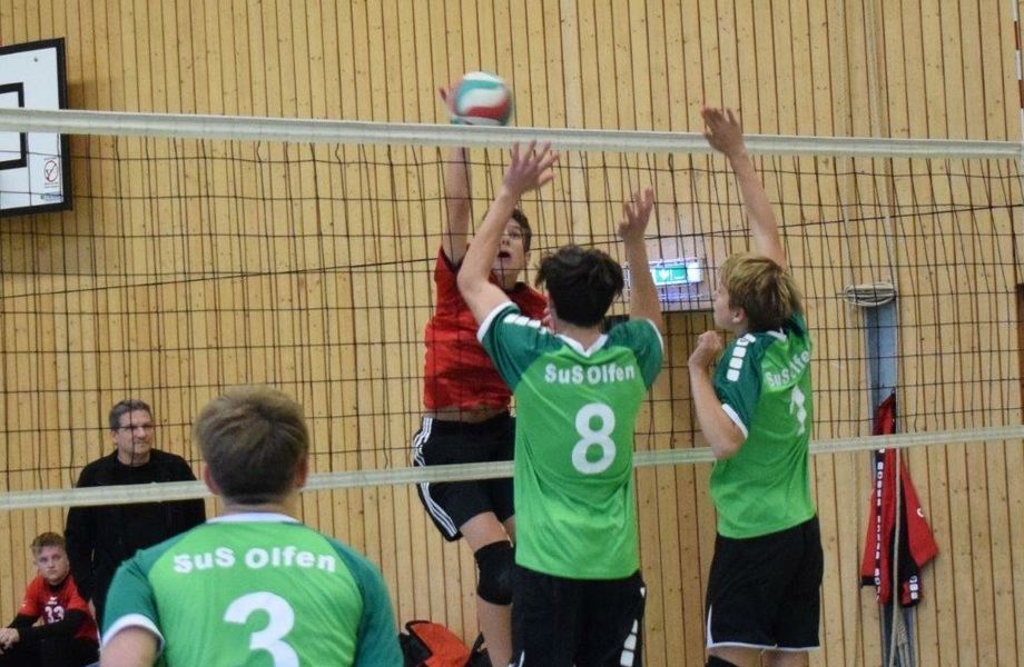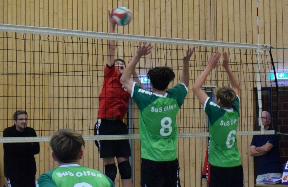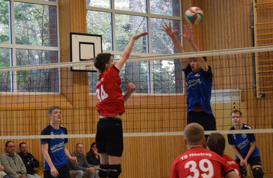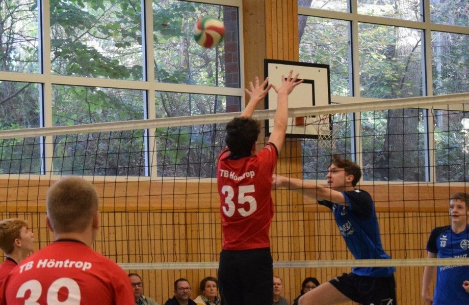 Der GV Waltrop verlor die ersten beiden Spiele jeweils 1:2 und der SuS Olfen gewann beide Spiele zum Auftakt. So war das Spiel gegen Waltrop eigentlich ein guter Auftakt in den Spieltag, bei dem Aaron krankheitsbedingt fehlte. So kamen Tom und Nick wechselweise jeweils erstmals als Diagonalspieler zum Einsatz. Allerdings wurde bereits beim Einschlagen klar, dass der Gegner keinefalls zu unterschätzen war, denn ein junger Ukrainer machte enorm viel Druck im Angriff. Im Verlauf des ersten Satzes, im dem die Höntroper viele Aktionen nicht konsequent zu Ende spielten, zeigte sich, dass jeder Ball vorne auf Oleksandr vom GVW gespielt wurde. Und diese machte immer wieder den Punkte über die Mitte (21:25).
