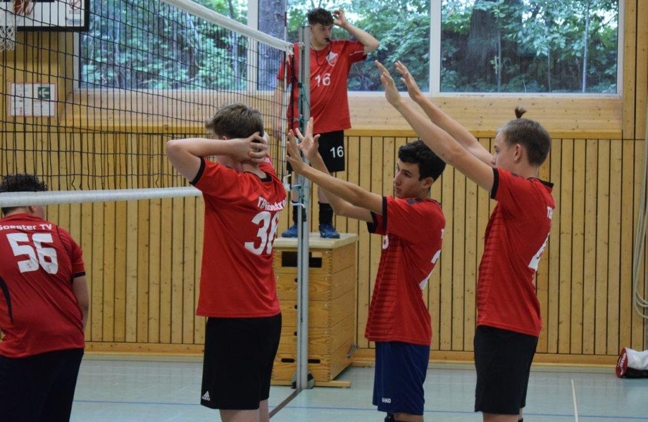 Da Jannes aufgrund einer Familienfeier nicht mehr zur Verfügung stand, wechselte Max, der in der U18 und den Herren III ohenhin auf der Libero-Position zu Hause ist, von der Außen-/Annahmeposition auf den Abwehrchef. In der Folge konnte die Mannschaft zwei enge Sätze abliefern (26:24, 22:25).