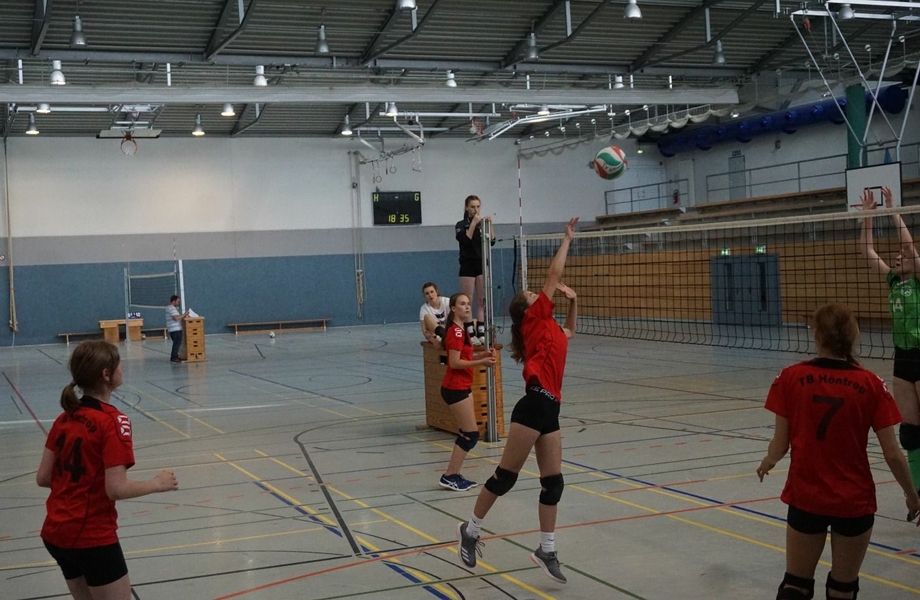 Danach folgte das Vorrundenspiel gegen den VC Freudenberg 73. Das Spiel war von Anfang an viel dynamischer und es musste mehr her als gute Aufschläge. In diesem Spiel übernahmen erstmals Lotta Surwehme und Melina Biermann zusammen das Zuspiel und setzen die Angreiferinnen immer wieder gut in Szene. Neben vielen mutigen Angriffen war es vor allem Filipa Grbic, die mit neun Aufschlägen in Folgen dem TBH viele Punkte bescherte. Auch wenn Freudenberg sich im zweiten Satz spürbar wehrte, hielt Höntrop den Gegner weiter auf Abstand und konnte somit die Vorrunde als Tabellenerster abschließen.