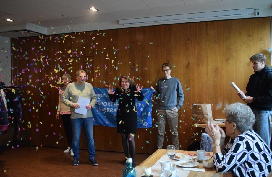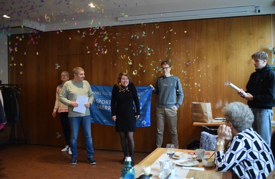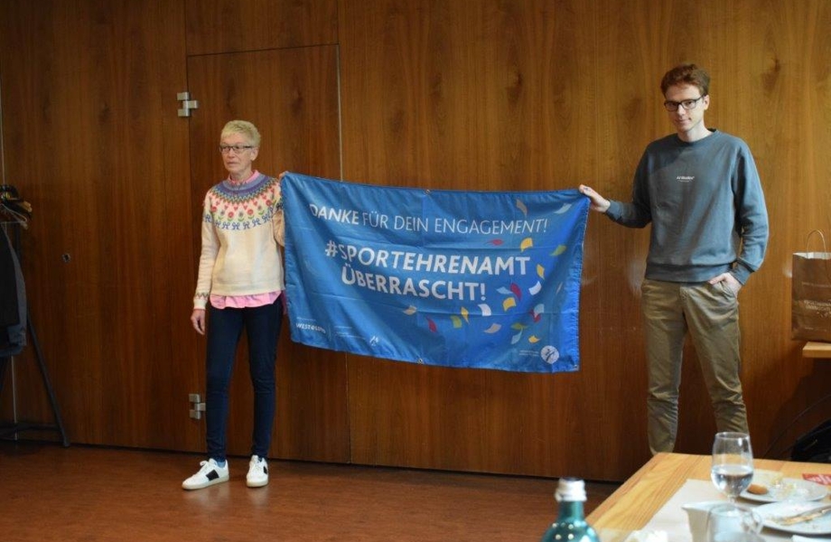 Der Vorstand hatte dann auch noch eine Überraschung parat, denn der Verein ist wieder bei der Aktion des Landespsortbundes "Ehrenamt überrascht" erfolgreich gewesen und konnte so ein weitere Paket übergeben. Überrascht wurde diesmal Martina Gronau, die als Übungsleiterin in vier Gruppen aktiv ist und zudem regelmäßig die Fahne bei der Sportabzeichenabnahme oben hält. Vielen Dank für diesen Einsatz.
