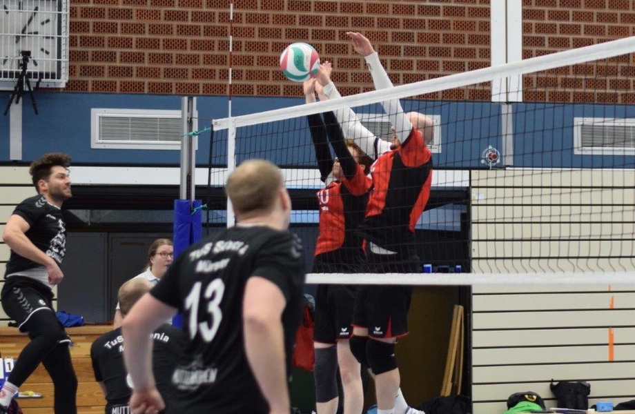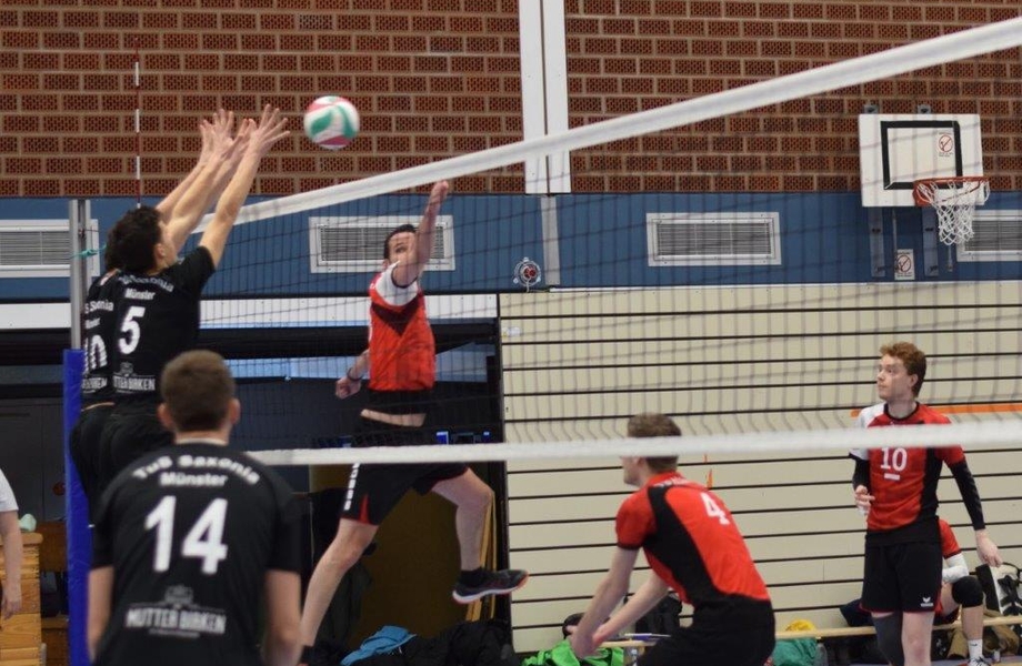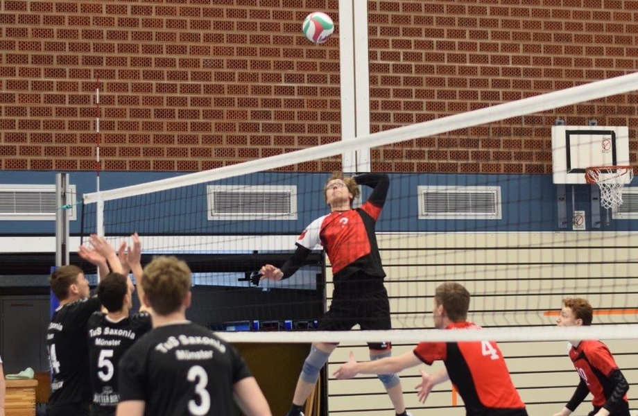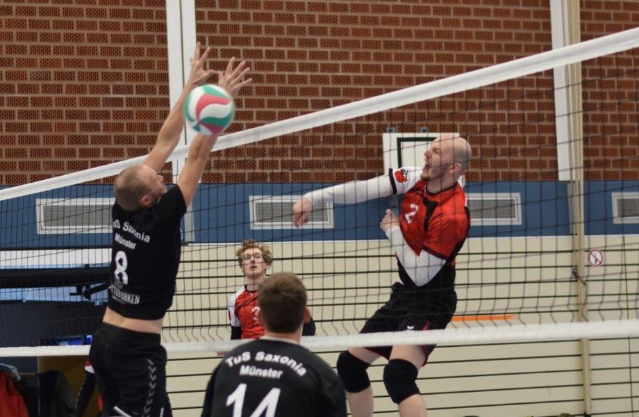 Im vierten Satz lagen die Höntroper zwar schnell mit 1:4 hinten, aber dannach entwickelte sich ein klasse Schlagabtausch mit wechselnden Serien im Service. Bei der zweiten Auszeit des TBH-Trainers lag die Mannschaft noch mit 20:21 hinten, um nach der Ansprache mit 23:21 in Führung zu gehen. Beim 24:22 hatte das Team dann die ersten beiden Matchbälle, die aber in dieser intensiven Spielphase nicht kühl genutzt werden konnten. Es musste dann ein Satzball beim 24:25 abgewehrt werden, ehe sich beim 26:25 die dritte Siegchance bot. Aber auch die konnte leider nicht genutzt werden. Die letzte Chance den Verfolger in der Tabelle deutlich zu distanzieren gelang auch beim 27:26 nicht. Beim 27:28 wurde der zweite Saxonia-Satzball noch abgewehrt, ehe dann beim 28:30 der Satz noch sehr intensiven 35 Minuten doch noch an Münster ging.
