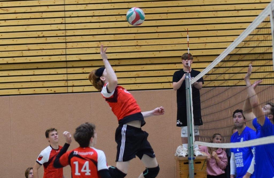 Die blau-weißen Gastgeber hatten das Spiel von Anfang an gut im Griff, der Block stand viel zu häufig zu gut und wenn dann doch einmal die Lücke erwischt wurde, stand die meist sichere Feldabwehr parat. So versuchten es die Höntroper Spieler mit gelegten Bällen, die jedoch falsch platziert wurden, oder noch mehr Druck beim Armzug, was dann wiederum zu mehr Eigenfehlern führte. Da zudem eine zu große Anzahl von Aufschlägen zu lang waren, gab es kaum einmal Serive-Winner, so dass die 0:3-Niederlage am Ende für alle Außenstehenden unvermeidbar erschien.