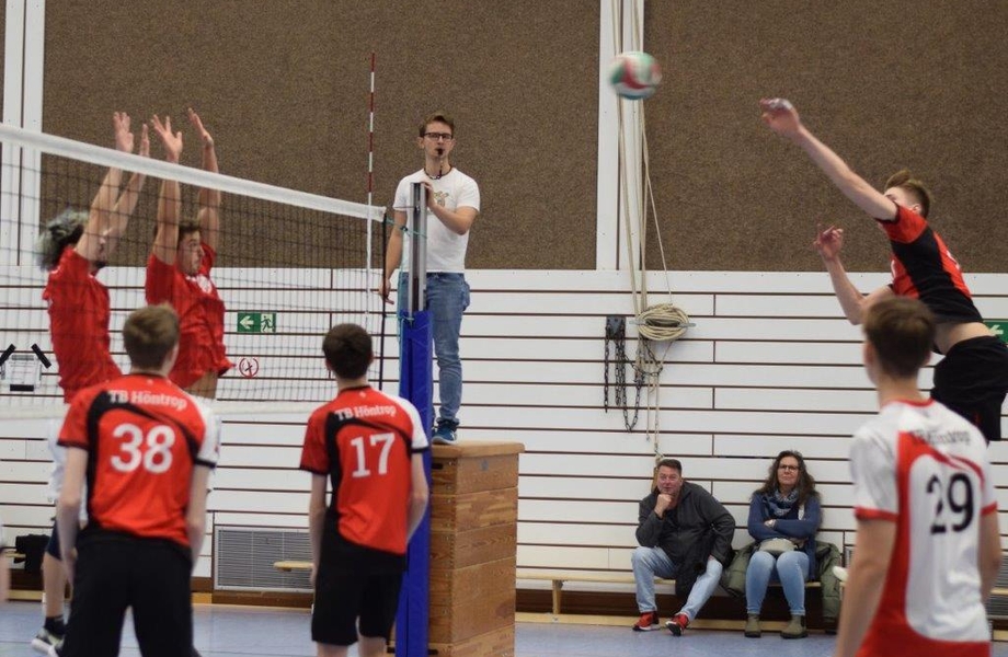 Auch im zweiten Satz zeigte sich zunächst ein ähnliches Bild. Florian als Erster am Aufschlag legte dort gleich einmal mit insgesamt zehn guten Aufschlägen vor, nachdem er im ersten Satz noch den ein oder anderen Fehler im Aufschlag machte. Auch zwei Auszeiten des Gegners brachten ihn nicht aus dem Konzept und so lagen die Höntroper Jungs mit einer komfortablen 11:0-Führung vorne. Hier war es dann die zu schnell bzw. zu früh abfallende Spannung, sodass nach der 16:7 Führung einige unnötige Fehler gemacht und unklare Entscheidungen getroffen wurden. So konnte Langendreer sich bis auf 23:22 heran kämpfen. Eine Auszeit und fünf Spielzüge später war mit dem zweiten Satzball dann auch der zweite Durchgang gewonnen und die kleine Schwächephase überstanden.