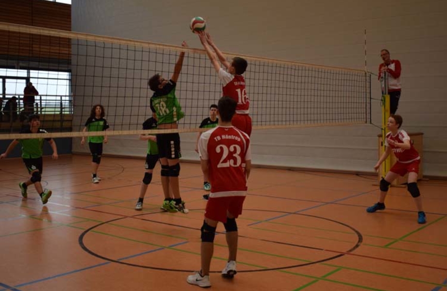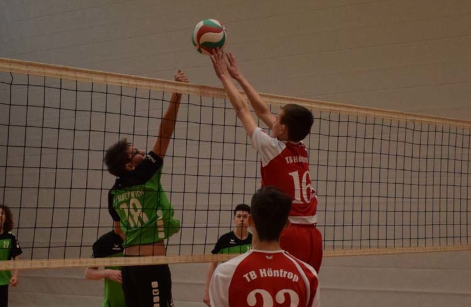 Im abschließenden Spiel gegen die RWR Volleys aus Bonn ging es jetzt um die beste Ausgangslage für die Quali B. Allerdings hatte Bonn seine Oberliga-Staffel 1 klar dominiert und in sieben Spielen lediglich einen Satz abgegeben. Aber Höntrop gab sich kämpferisch und konnte gegen die annähernd zwei Jahre älteren Bonner gut mithalten. Letztlich war es der gegnerische Zuspieler Jonas Bach, der im Zusammenspiel mit seinem Kaptän Anton Krone den Unterscheid machte. Mit Angriffen aus allen Lagen wurde die durchaus gute Leistung der Höntroper Jungs noch übertroffen, so dass man sich dem Favorit letztlich knapp mit 20:25 und 22:25 geschlagen geben musste.